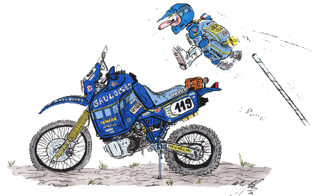Purtroppo i virus dell’enduro mi rodeva dentro e così il pignone ha perso 2 denti, gli ammortizzatori posteriori sono diventati a gas, e i percorsi sono diventati anche da fuoristrada leggero, ma comunque la salita del Guglielmo fino in cima (allora si poteva fare), sono riuscito farla. Un giorno stavo tornando da Pavia, ad un posto di blocco mi ha fermato la stradale, e subito mi hanno contestato la marmitta, stavano incominciando a scrivere il verbale, in quel momento è passato un Le Mans a scarico libero e a manetta, il poliziotto mi ha guardato con lo sguardo di chi si sente in colpa, mi ha detto: ”mi basta che tu ammetti che fai troppo rumore”, cosa che io ho fatto immediatamente, mi ha restituito i documenti:” vai pure”. La settimana scorsa, la mattina di Pasqua avevo voglia di un giro in moto, era da circa un mese che non uscivo, l’ultimo giro era finito con una capottata, ne porto ancora le conseguenze, sapevo di avere la moto con la revisione scaduta, ma le possibilità di essere fermato erano contro tutte le statistiche, inoltre i miei giri toccano raramente l’asfalto. Vestito sono uscito, sterrato, Izano, sterrato Madignano, sterrato, Castelleone, qui sono costretto a fare circa 200 metri di asfalto per superare un semaforo e riprendere di nuovo il fuoristrada, appena passato il semaforo: pattuglia di carabinieri, paletta. Prima regola farsi vedere tranquilli:” buona Pasqua, siamo solo noi in giro, ma vi pagano il doppio a farvi lavorare la pasqua? ”Almeno!" Poi dopo un controllata ai documenti mi si avvicinano e mi dicono:” dove sta andando”, “ a fare qualche foto”, “è meglio se va a casa, è senza revisione”, "certo, grazie”. A quel punto ho cercato di risalire sulla moto, ma non riuscivo ad alzare la gamba,
