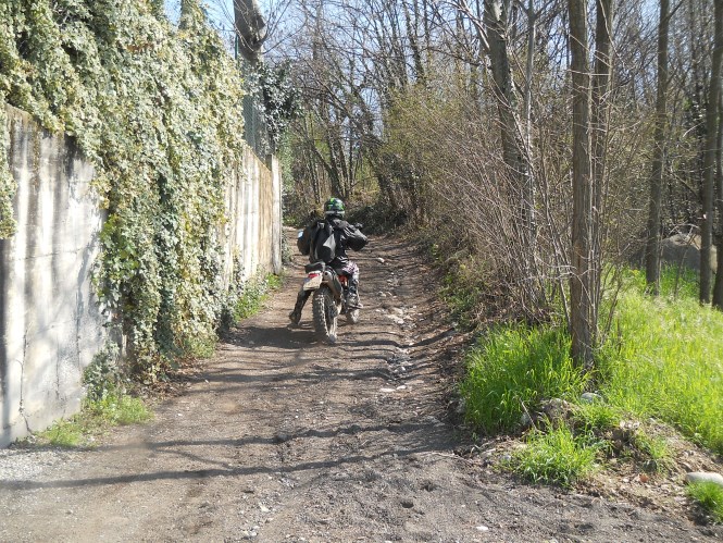 Noi proseguiamo poi con il motore al minimo, per non disturbare, seguendo le piccole vie tra le case, usciti poi dal paese cerchiamo il famoso sentiero, purtroppo sorpresa, nuovo divieto,